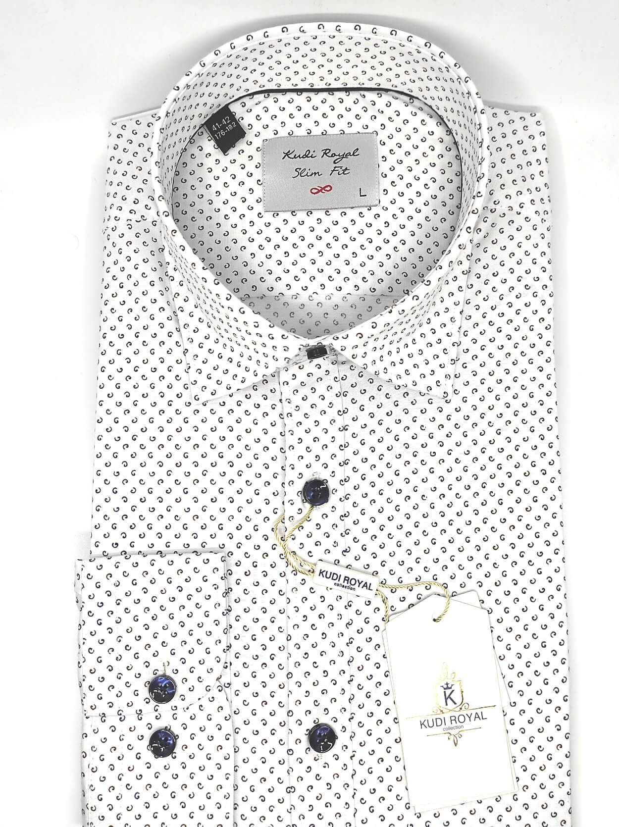 Koszula z najnowszej kolekcji firmy Kudi Royal Biała Granatowo-Brązowy Wzór.