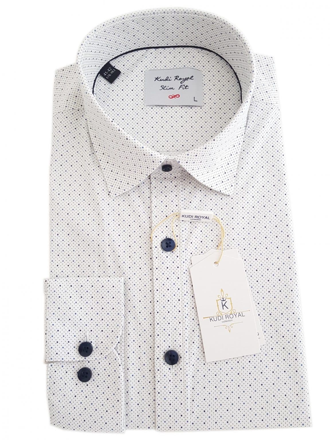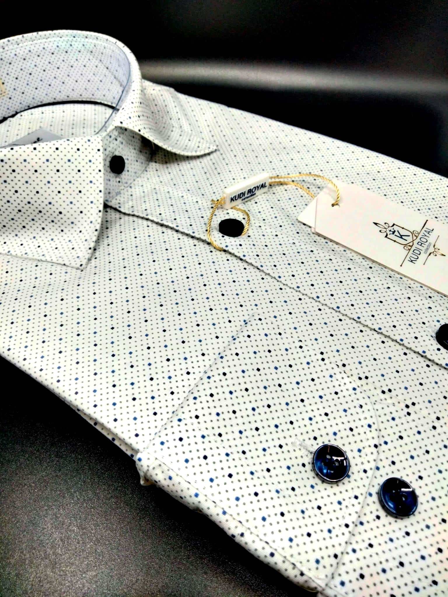 Koszula z najnowszej kolekcji firmy Kudi Royal Kropki granatowo-niebieskie.