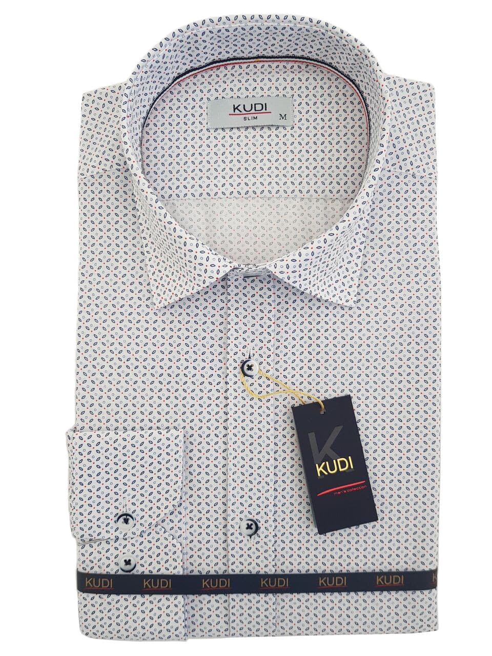 Koszula męska z najnowszej kolekcji firmy Kudi – biła kropki.