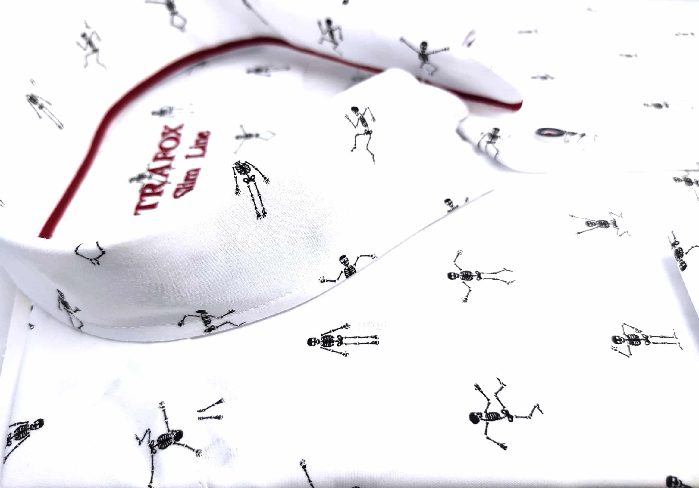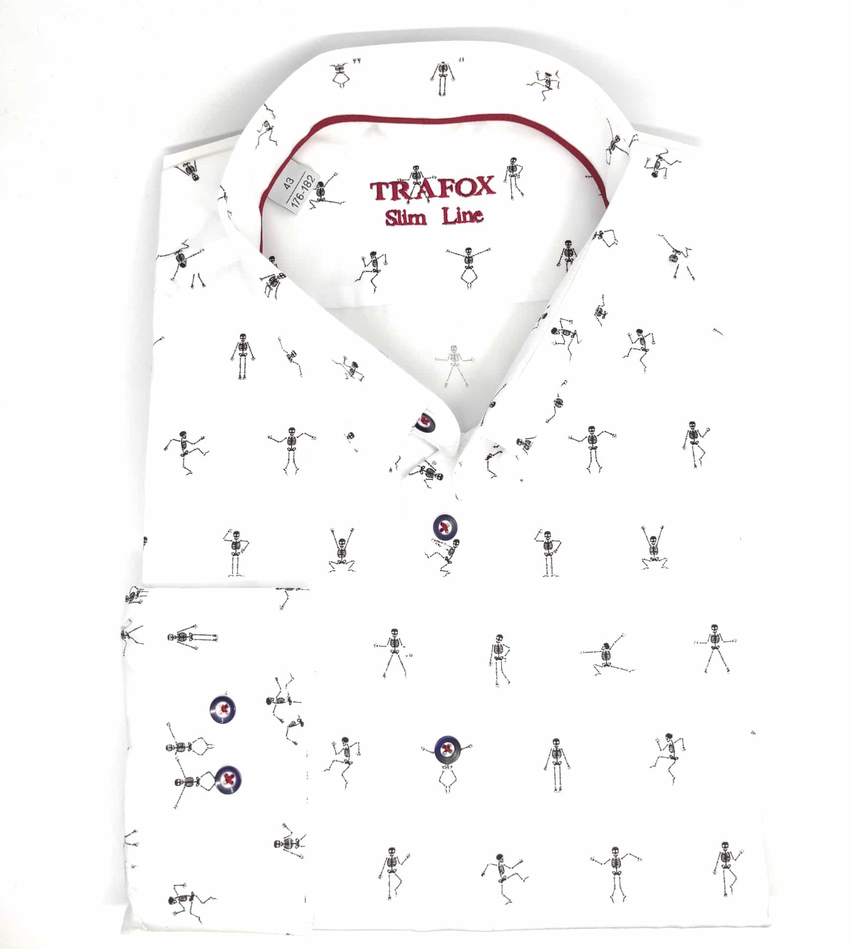 Koszula z najnowszej kolekcji firmy Trafox, biała w kościotrupy.