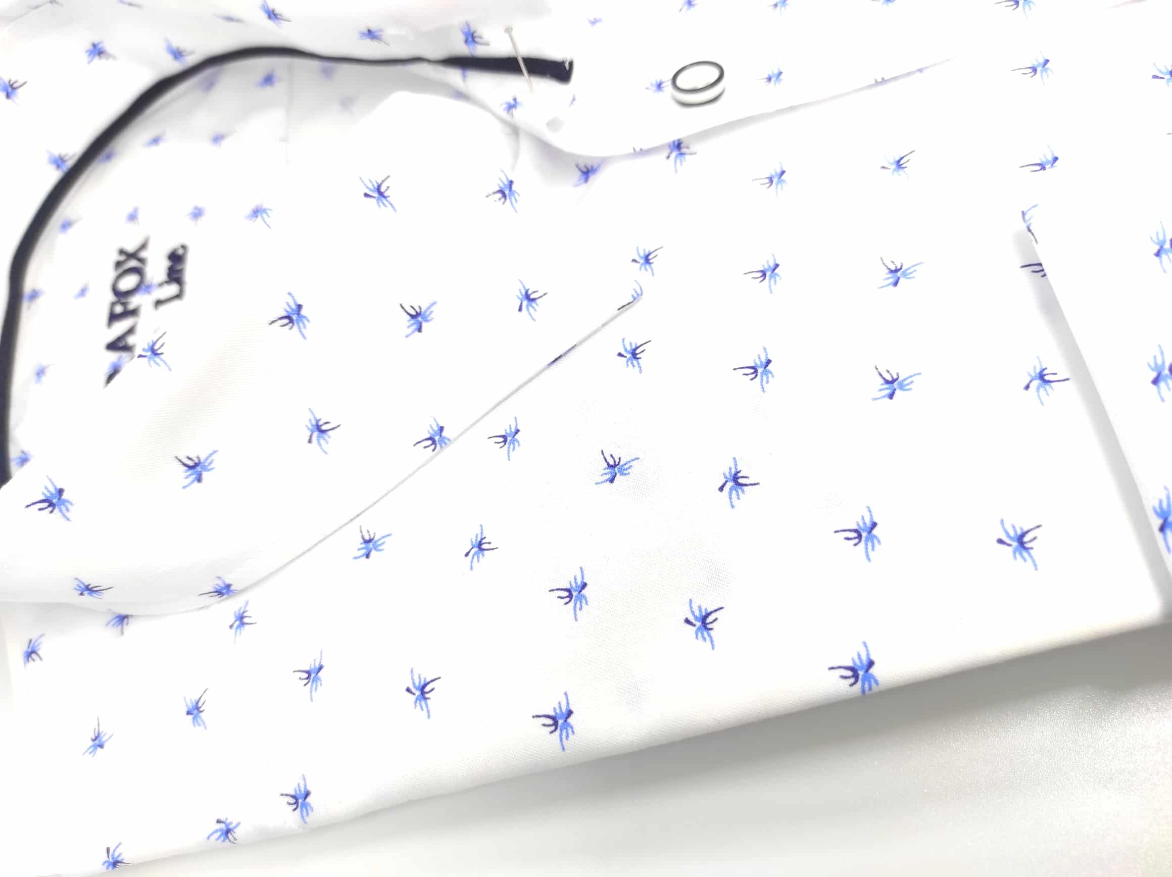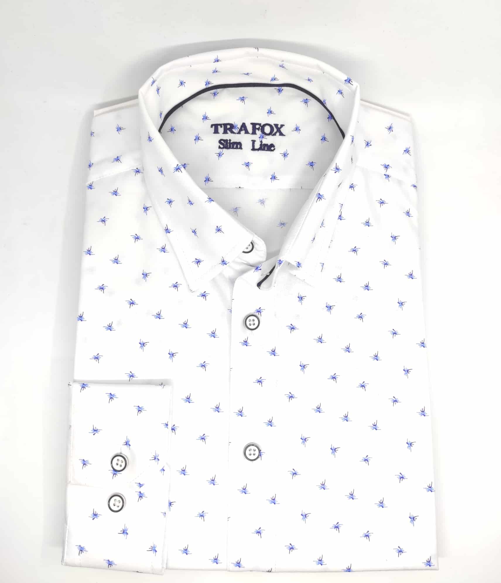 Koszula z najnowszej kolekcji firmy Trafox, biała w niebieski wzorek.
