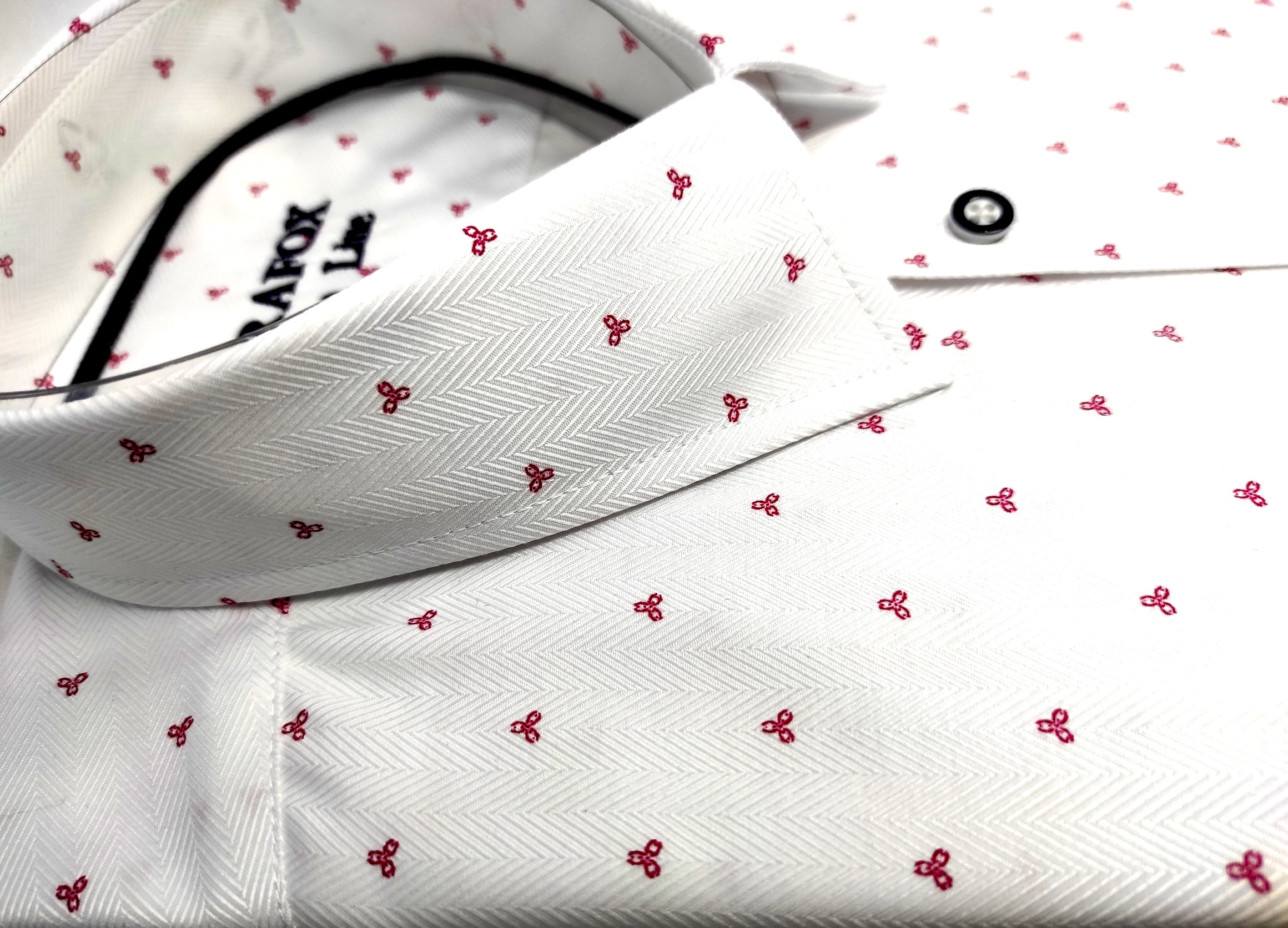 Koszula z najnowszej kolekcji firmy Trafox, biała w wiatraczki.