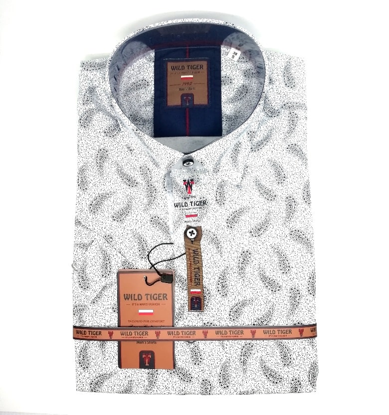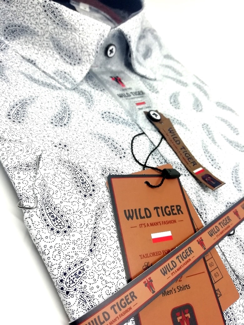 Koszula z najnowszej kolekcji firmy Wild Tiger, biała we wzór turecki – krótki rękaw.