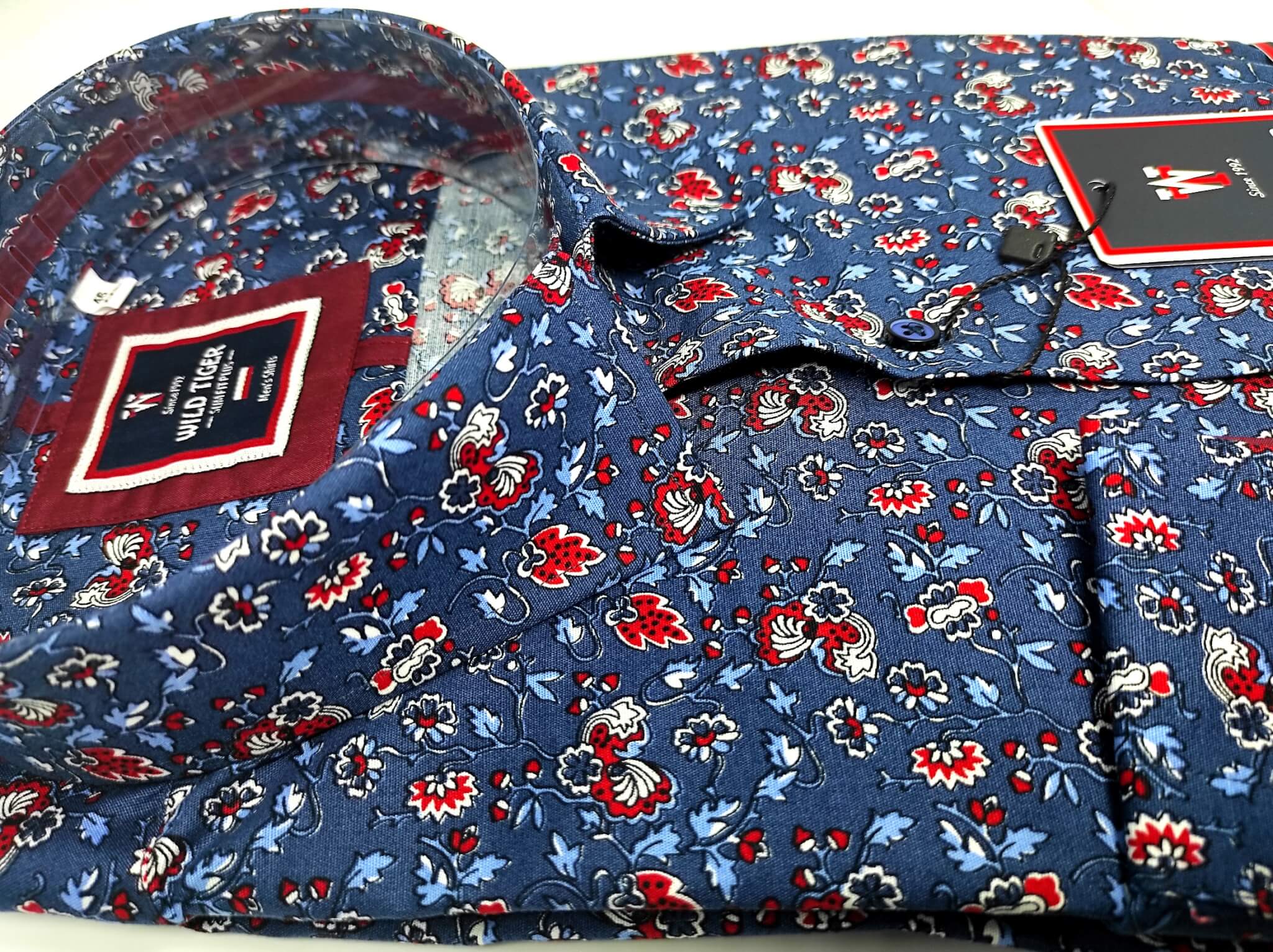 Koszula z najnowszej kolekcji firmy Wild Tiger, granat kwiaty.