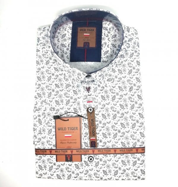 Koszula z najnowszej kolekcji firmy Wild Tiger, biała w kwiatuszki – krótki rękaw.