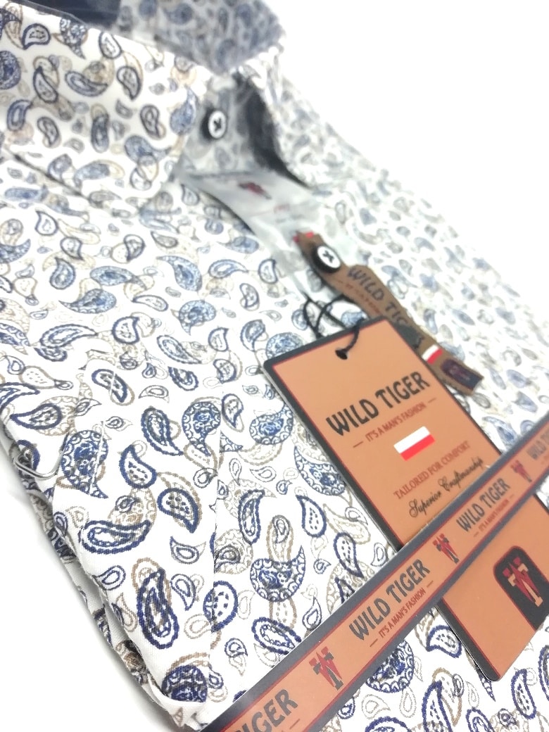Koszula z najnowszej kolekcji firmy Wild Tiger, niebiesko złota.