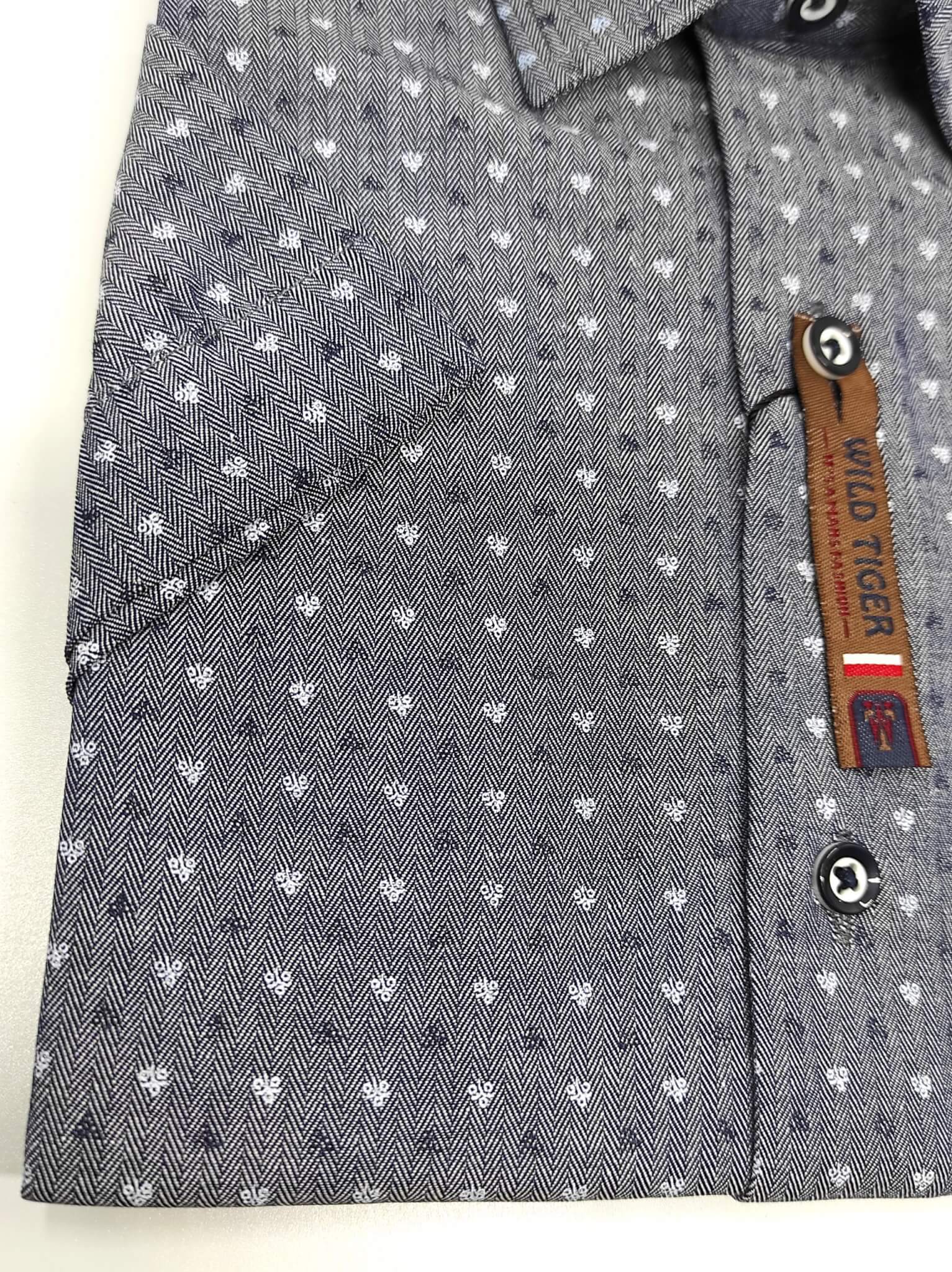 Koszula z najnowszej kolekcji firmy Wild Tiger, Popiel we Wzorek- krótki rękaw.