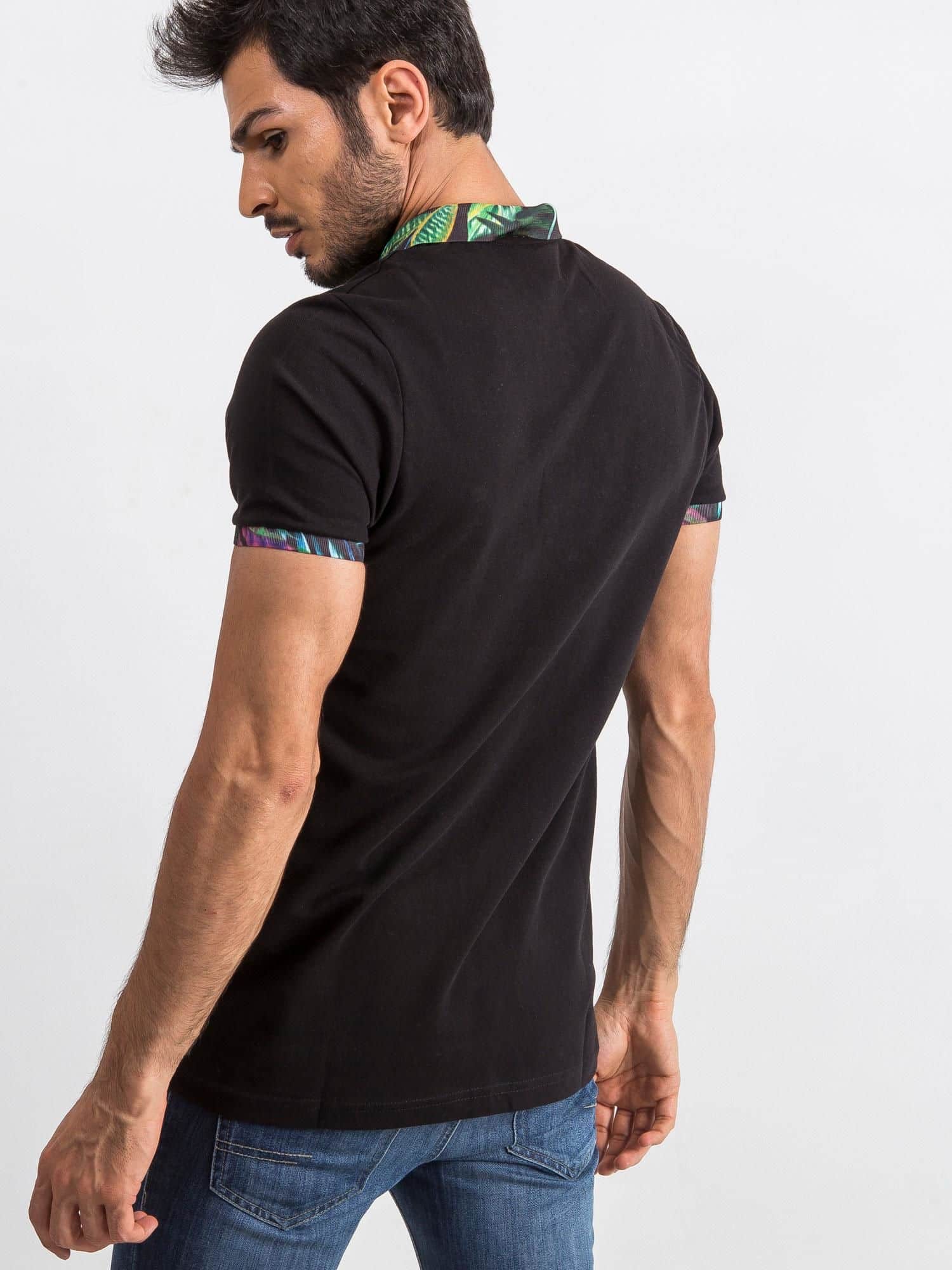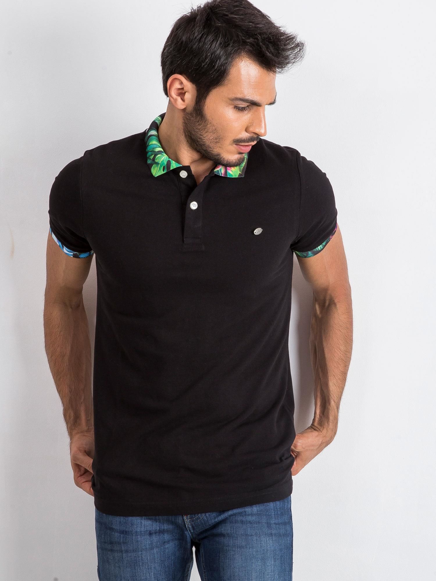 Koszulka Polo Czarna Kolorowy Kołnierzyk