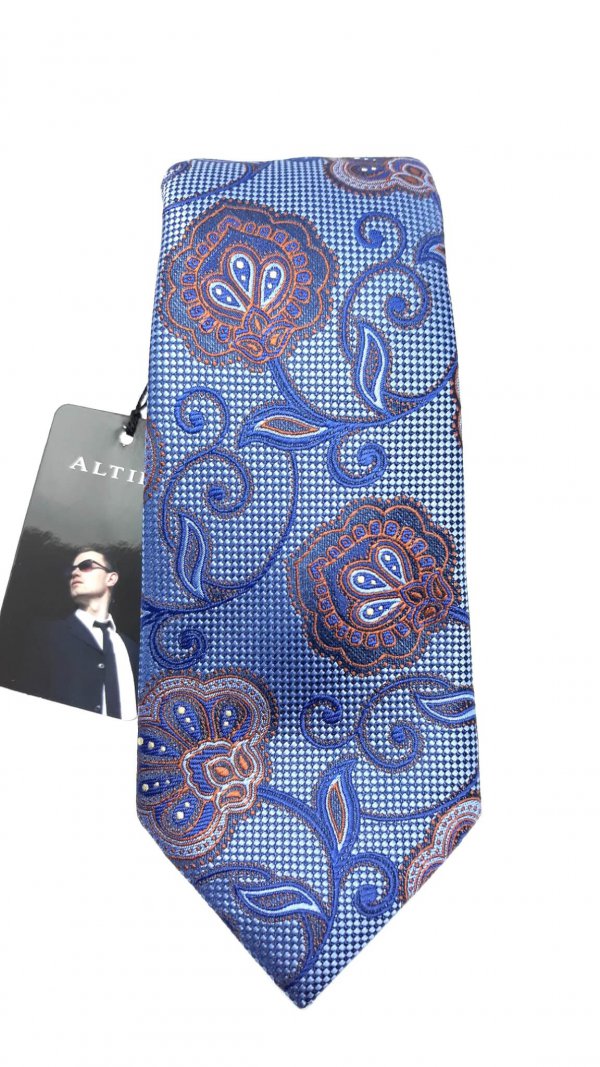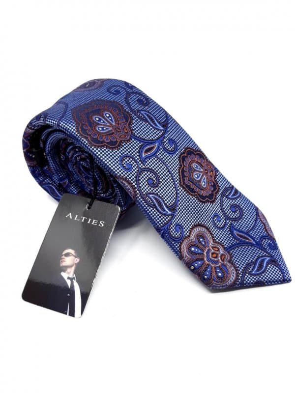 Elegancki krawat męski firmy Alties o klasycznym i modnym kroju, granatowy w rudy wzór. Krawat o klasycznym i modnym kroju, wykonany z microfibry. Jest on bardzo ważnym elementem ubioru, dzięki któremu każdy mężczyzna może wnieść do swojego stroju odrobinę koloru. Kompletując garderobę należy pamiętać, aby krawat tworzył spójny zestaw z marynarką lub koszulą. Jego unikatowy wzór z pewnością spełni swoją funkcję w połączeniu z różnymi tkaninami w kilku wariantach kolorystycznych. Ponadto wyraźne i mocne akcenty zdobnicze dodadzą charakteru i pozwolą wyróżnić się stylem. Krawat można dobrać zarówno do karnacji, garnituru jak i temperamentu.