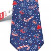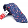 Świąteczny elegancki krawat męski w ciekawy wzór symboli świątecznych na granatowym tle.