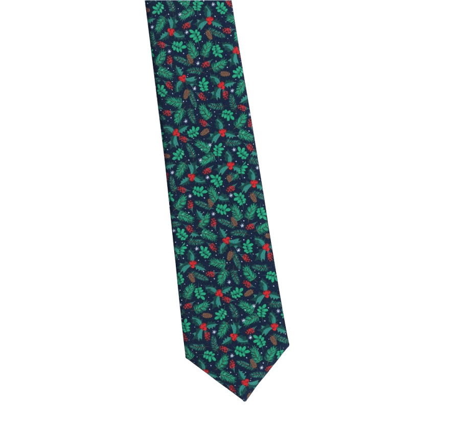 Elegancki krawat męski w ciekawy wzór liści , szyszek,jarzębiny.