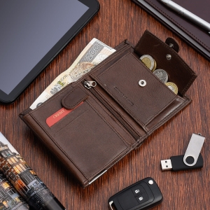 Portfel dostarczany jest w eleganckim pudełku prezentowym,co czyni go idealnym wyborem na upominek dla bliskiej osoby.To nie tylko praktyczny dodatek,ale również wyraz stylu,klasy i dbałości o szczegóły.