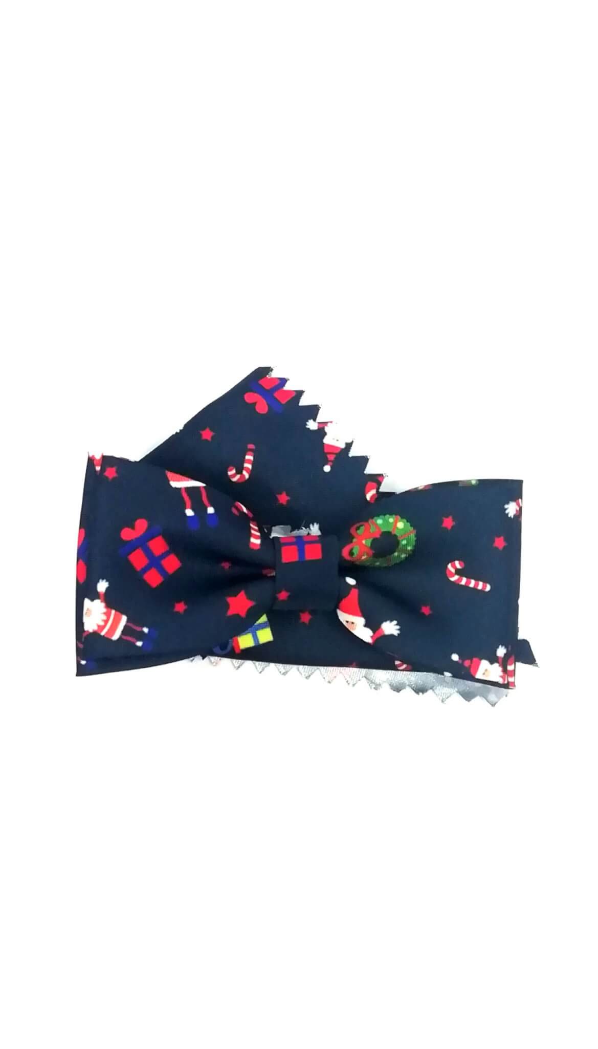 Świąteczna mucha dziecięca w Mikołaje, prezenty, lizaki i gwiazdki wraz z poszetką.