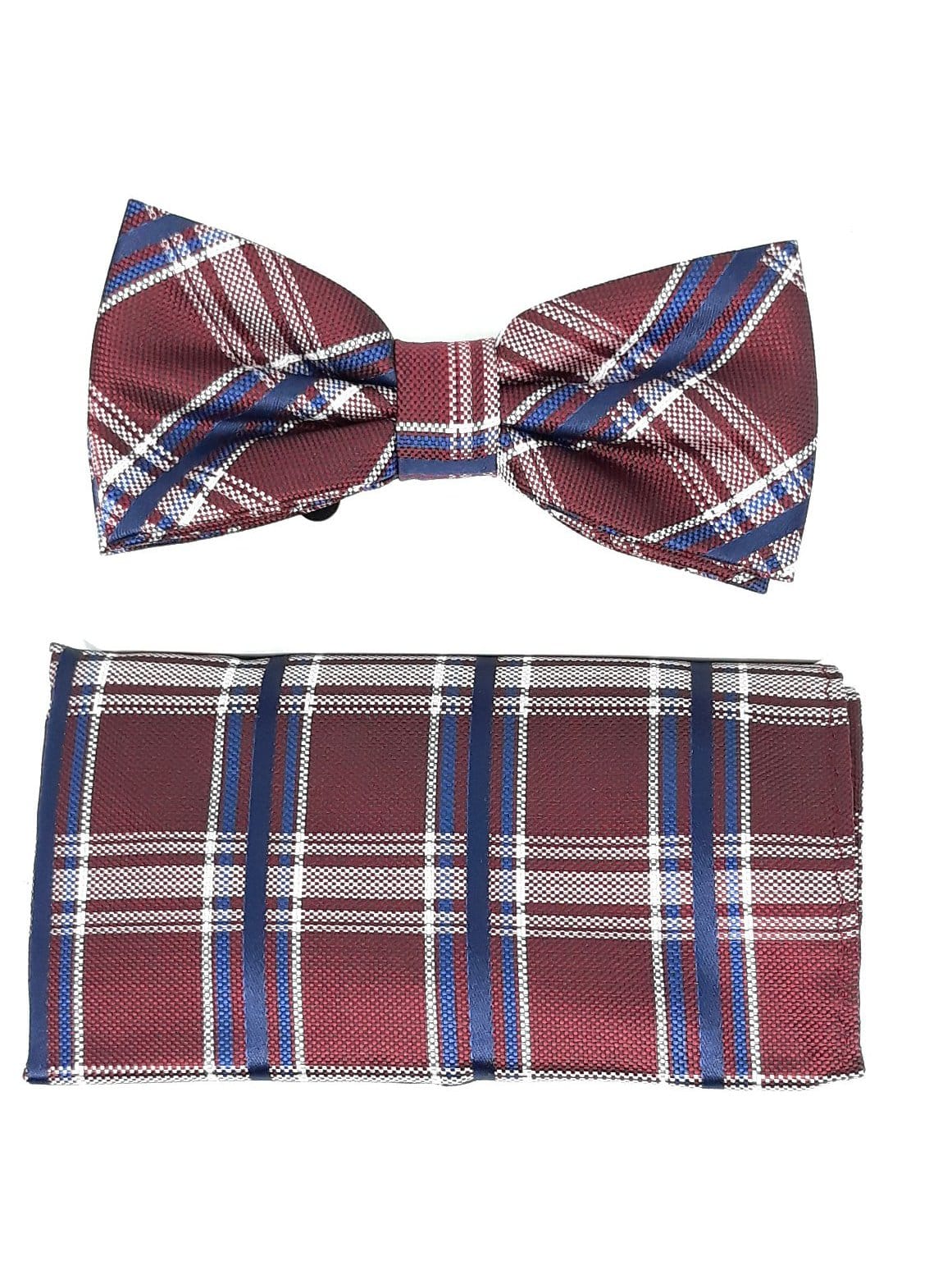 Unikatowa mucha w zestawie z poszetką w kolorze bordo, krata.