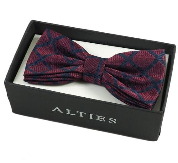 Unikatowa mucha w zestawie z poszetką, bordowa kratka.