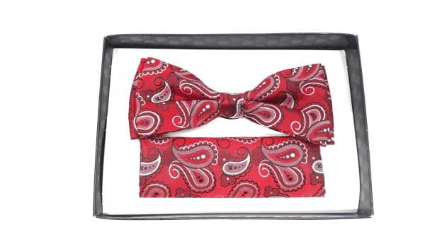Elegancka mucha w zestawie z poszetką, bordowa o unikatowym biało czarnym wzorze. Mucha to dodatek, który stanowi bazę garderoby eleganckiego mężczyzny. Zgodnie z płynącym obecnie trendy modowym nie ma obowiązku, który mówiłby o łączenia jej z frakiem czy kołnierzykiem łamanym przy koszuli. Moda nowoczesna zestawia muchę nie tylko ze stylem eleganckim, ale również z luźnym i sportowym strojem. Niebanalna mucha orzeźwi tradycyjny garnitur, jak również wyśmienicie będzie się komponować ze sportową marynarką czy luźnym kardiganem.