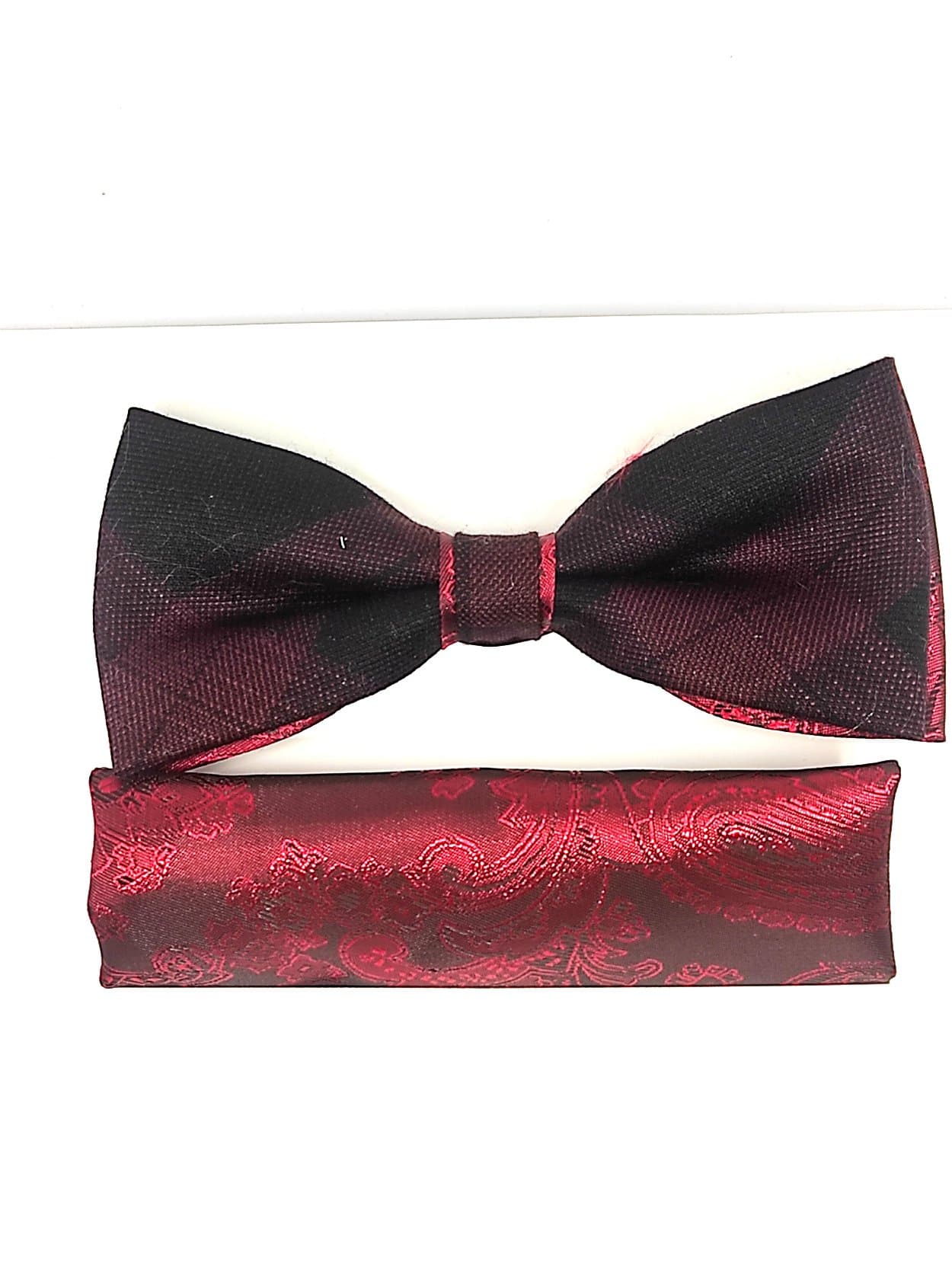 Unikatowa mucha w zestawie z poszetką bordowo czarna.