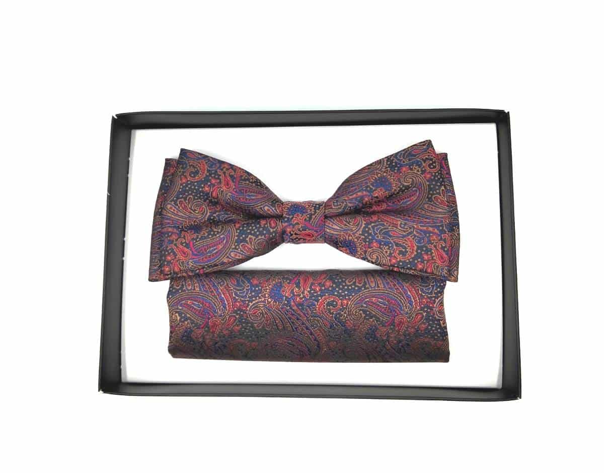 Unikatowa mucha w zestawie z poszetką granatowa ,brąz czerwony wzór.