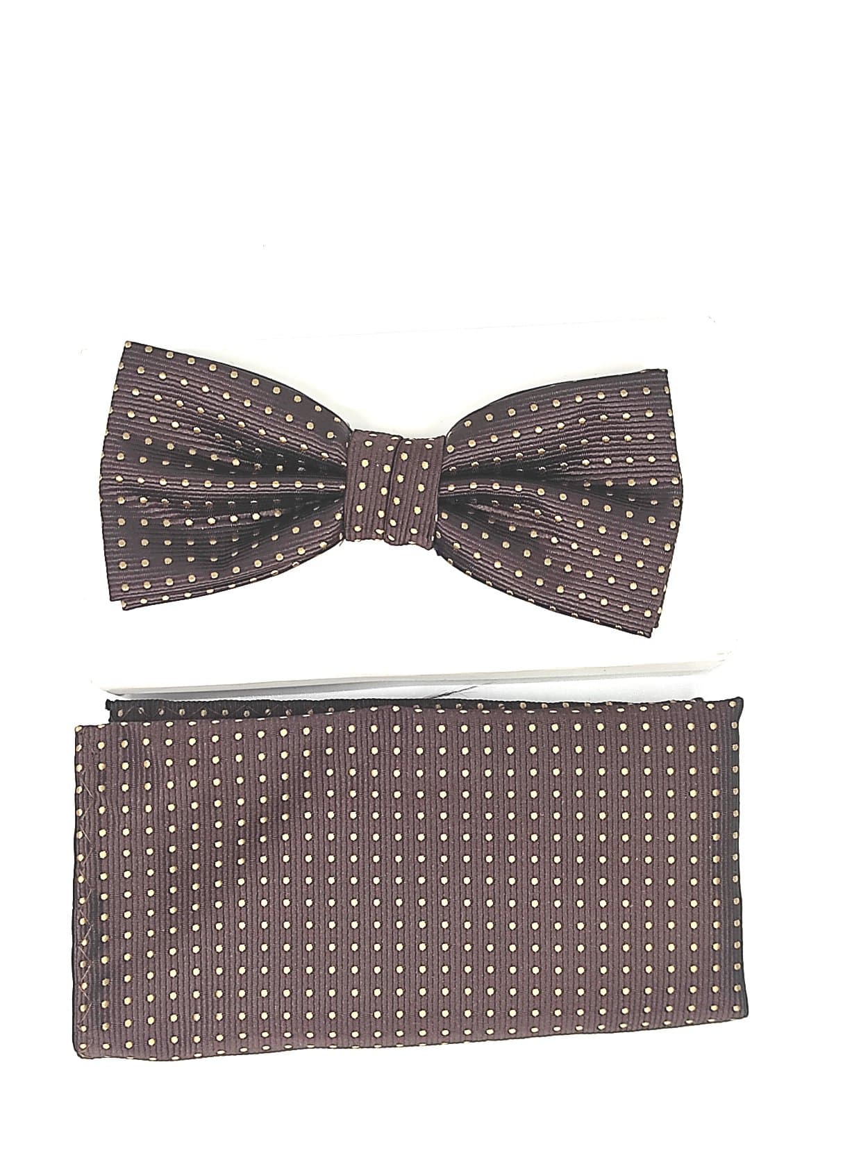 Unikatowa mucha w zestawie z poszetką, brązowa z kropeczki .