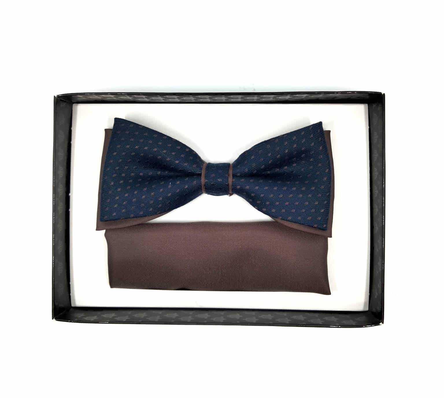 Unikatowa mucha w zestawie z poszetką granatowa brązowe kropeczki.