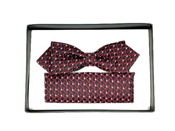 Unikatowa mucha w zestawie z poszetką czarno czerwona .