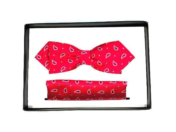 Unikatowa mucha w zestawie z poszetką czerwona w łezki.