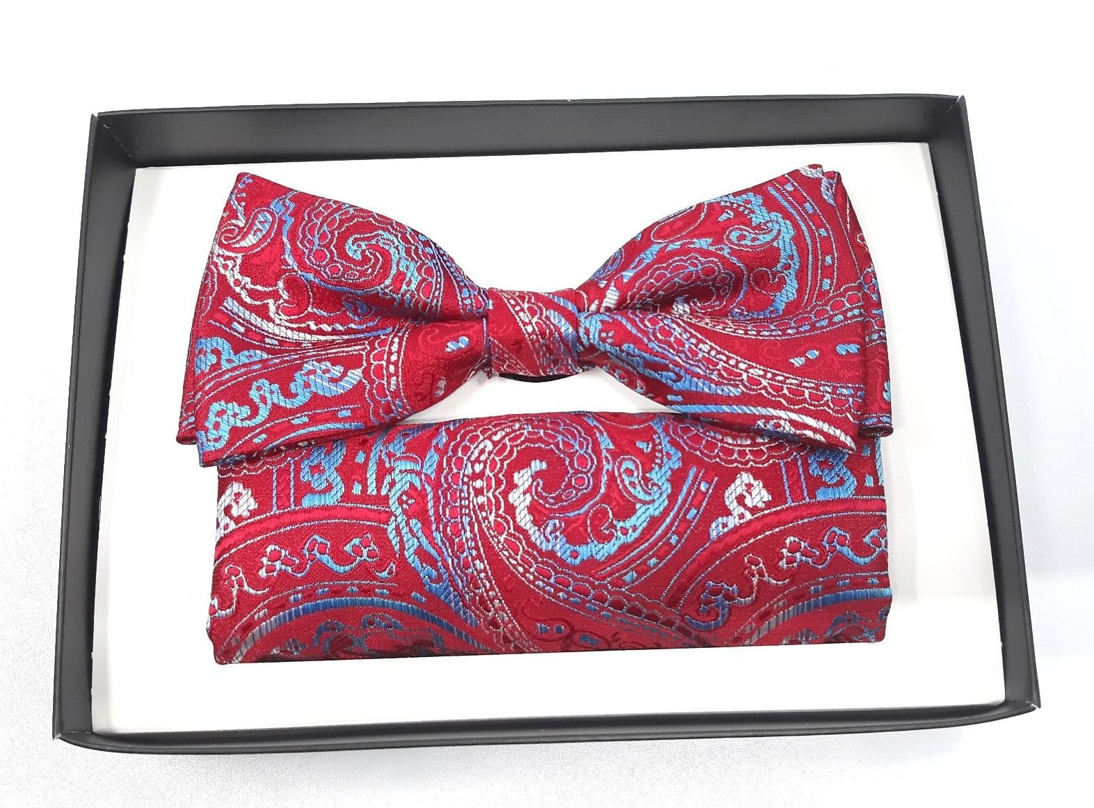 Elegancka mucha w zestawie z poszetką, czerwona o unikatowym niebieskim wzorze. Mucha to dodatek, który stanowi bazę garderoby eleganckiego mężczyzny. Zgodnie z płynącym obecnie trendy modowym nie ma obowiązku, który mówiłby o łączenia jej z frakiem czy kołnierzykiem łamanym przy koszuli. Moda nowoczesna zestawia muchę nie tylko ze stylem eleganckim, ale również z luźnym i sportowym strojem. Niebanalna mucha orzeźwi tradycyjny garnitur, jak również wyśmienicie będzie się komponować ze sportową marynarką czy luźnym kardiganem.
