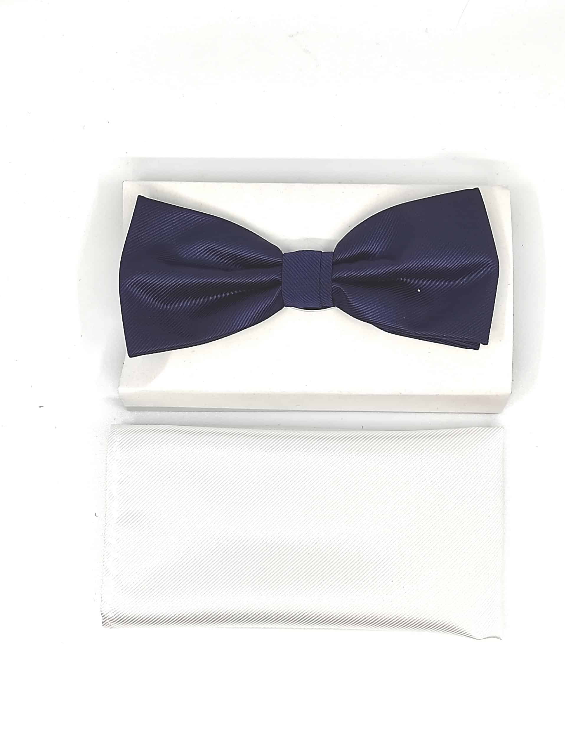 Unikatowa mucha w zestawie z poszetką, granatowa.