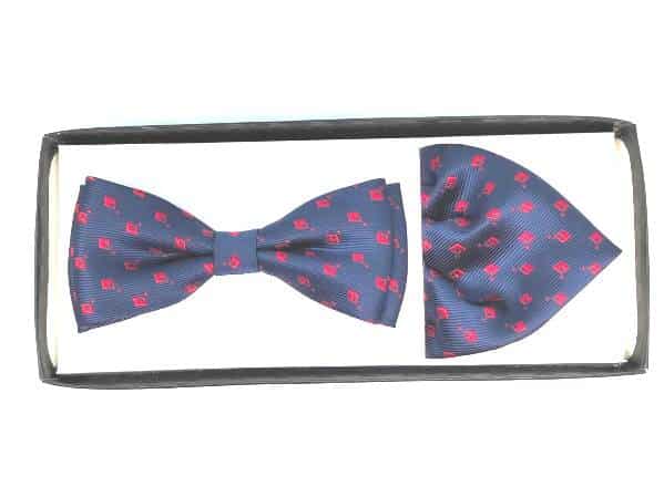 Mucha z Poszetką Granatowa Czerwony Wzór