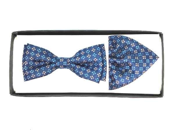 Unikatowa mucha w zestawie z poszetką, granatowa w kwiatuszki.
