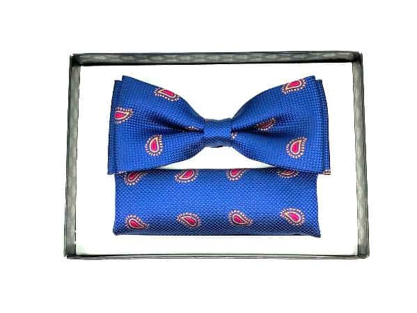 Elegancka mucha w zestawie z poszetką, granatowa w łezki. Mucha to dodatek, który stanowi bazę garderoby eleganckiego mężczyzny. Zgodnie z płynącym obecnie trendy modowym nie ma obowiązku, który mówiłby o łączenia jej z frakiem czy kołnierzykiem łamanym przy koszuli. Moda nowoczesna zestawia muchę nie tylko ze stylem eleganckim, ale również z luźnym i sportowym strojem. Niebanalna mucha orzeźwi tradycyjny garnitur, jak również wyśmienicie będzie się komponować ze sportową marynarką czy luźnym kardiganem.