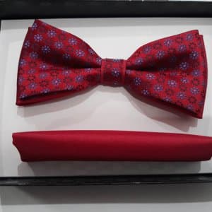 Mucha nie jest ręcznie wiązana lecz zawiązana na stałe. Pasek od muchy posiada regulację zapięcia. Komplet ten zawiera muchę wraz z poszetką widoczną na zdjęciu.