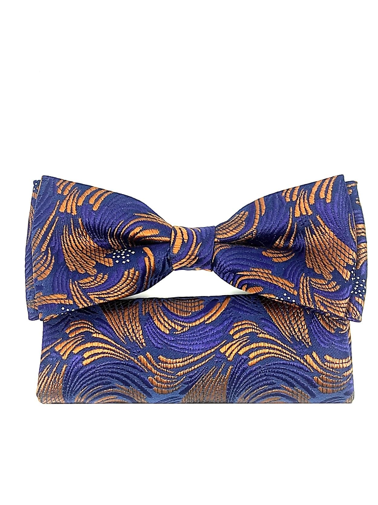 Unikatowa mucha w zestawie z poszetką granatowa w złote paski.