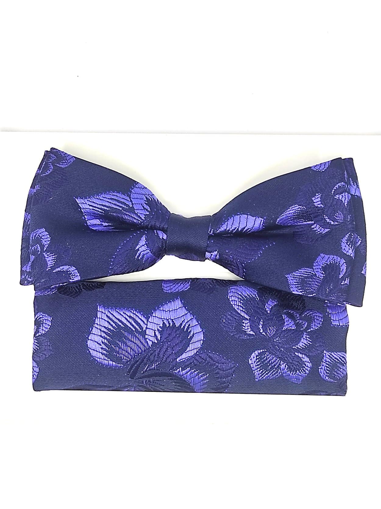Unikatowa mucha w zestawie z poszetką granatowa w kwiaty.