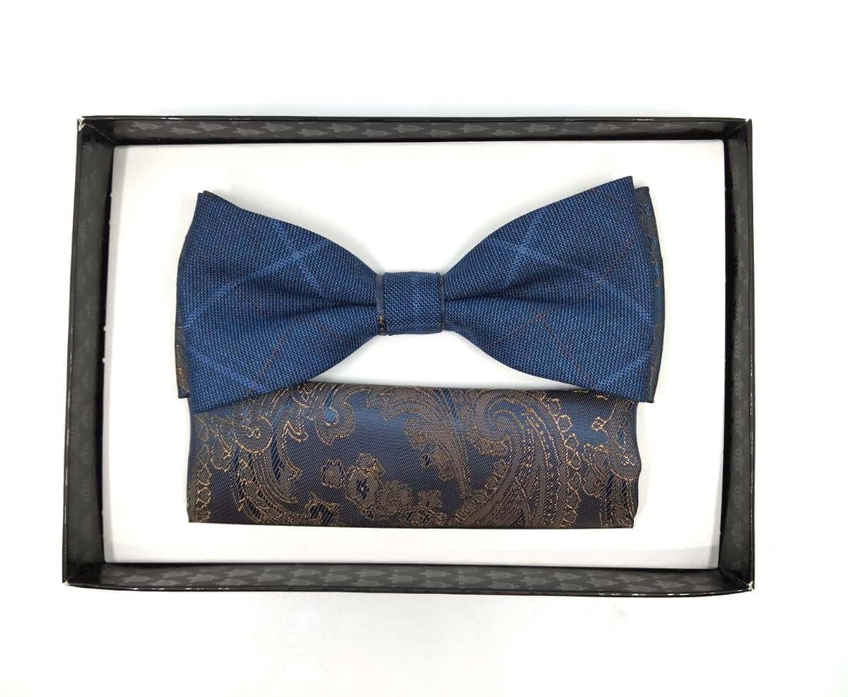 Unikatowa mucha w zestawie z poszetką granatowa brązowa krata.