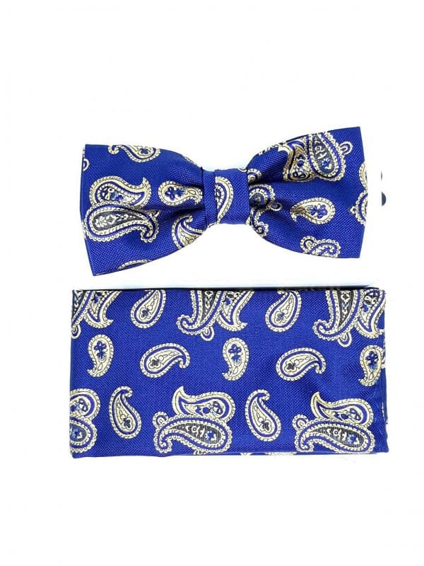 Unikatowa mucha w zestawie z poszetką granatowo w złota, w turecki wzór.