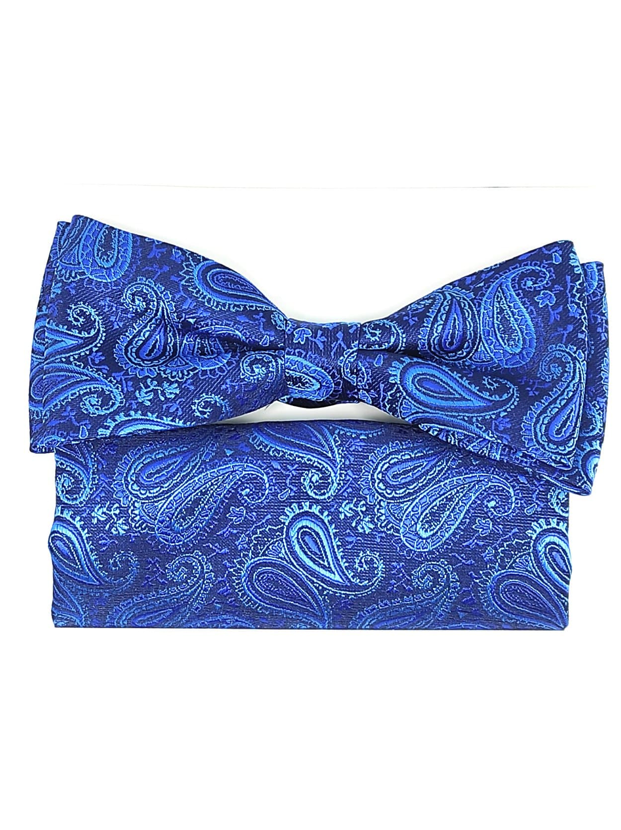 Unikatowa mucha w zestawie z poszetką niebieska we wzór turecki.