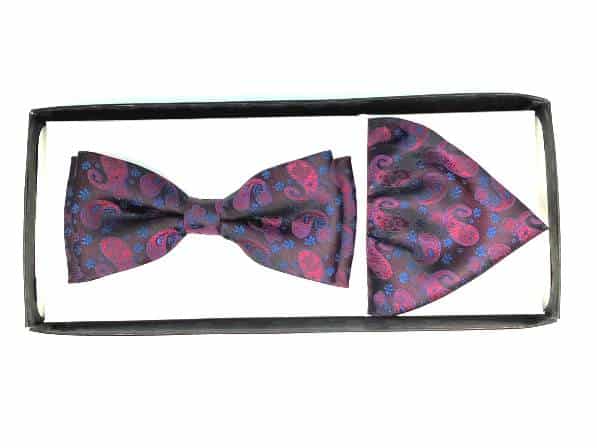 Unikatowa mucha w zestawie z poszetką, niebiesko bordowa we wzór turecki.