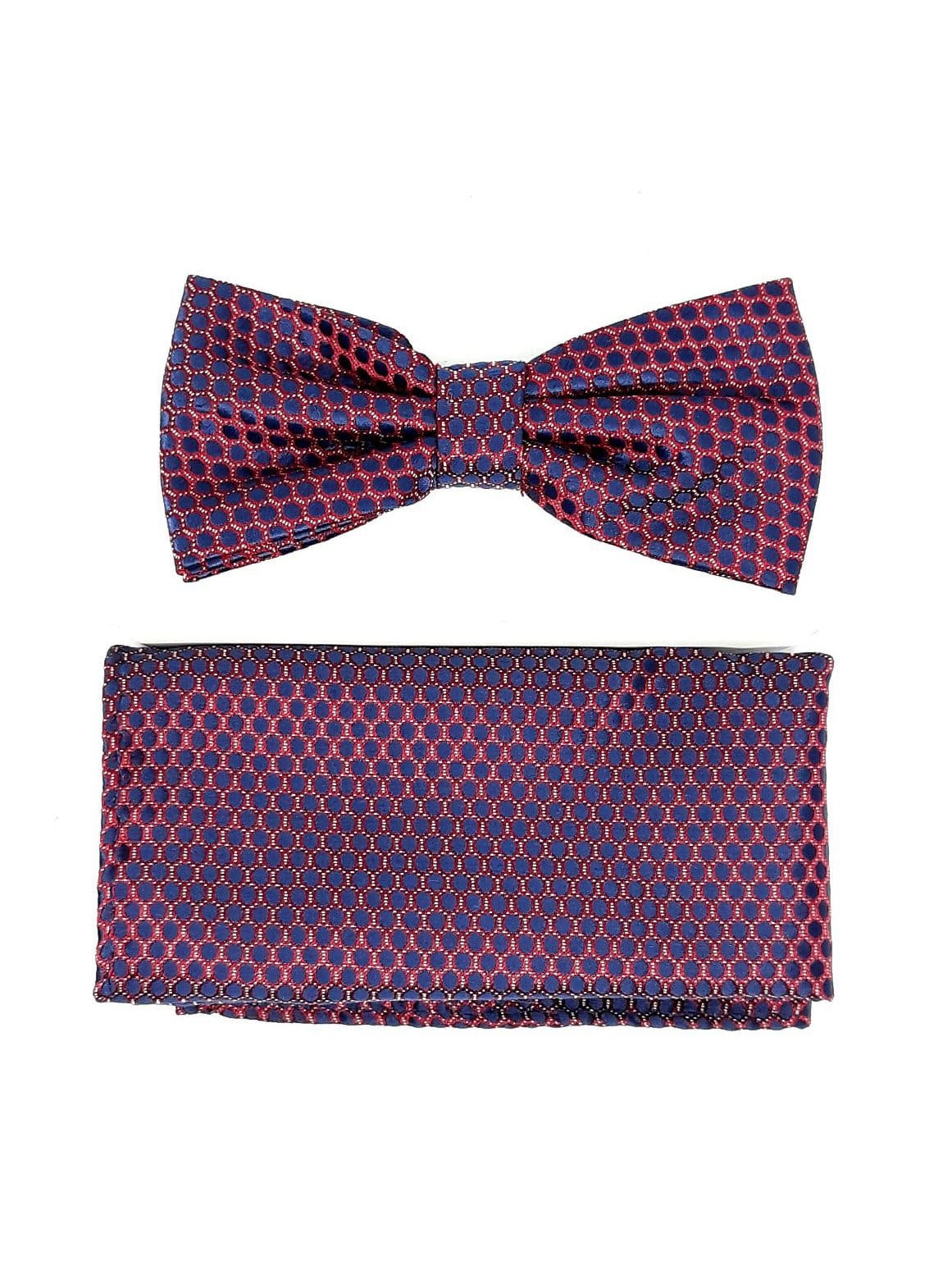Unikatowa mucha w zestawie z poszetką w kolorze granatowym w bordowy plaster miodu.