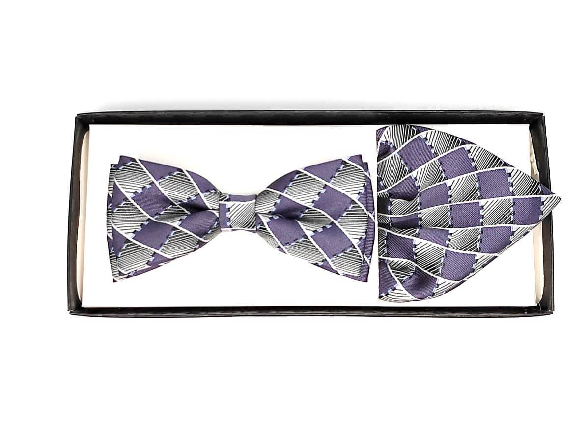 Unikatowa mucha w zestawie z poszetką, popielato-grafitowa w kratę.