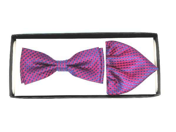 Unikatowa mucha w zestawie z poszetką, różowo niebieska we wzorek.
