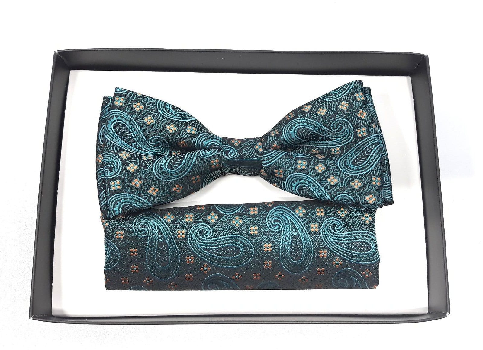 Elegancka mucha w zestawie z poszetką, turkusowa o unikatowym pomarańczowym wzorze. Mucha to dodatek, który stanowi bazę garderoby eleganckiego mężczyzny. Zgodnie z płynącym obecnie trendy modowym nie ma obowiązku, który mówiłby o łączenia jej z frakiem czy kołnierzykiem łamanym przy koszuli. Moda nowoczesna zestawia muchę nie tylko ze stylem eleganckim, ale również z luźnym i sportowym strojem. Niebanalna mucha orzeźwi tradycyjny garnitur, jak również wyśmienicie będzie się komponować ze sportową marynarką czy luźnym kardiganem.