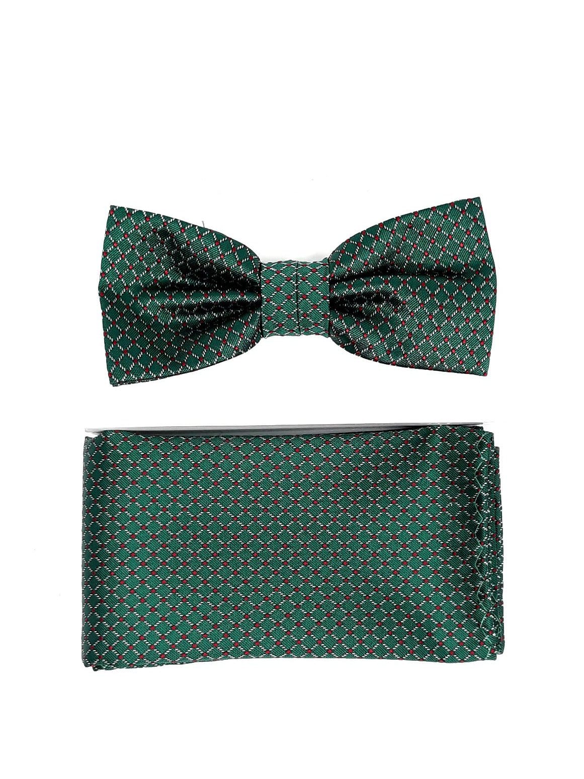 Unikatowa mucha w zestawie z poszetką, zielona w białą kratę bordowymi kropkami.