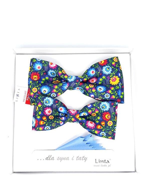 Unikatowy zestaw much we wzór kwiatków wraz z poszetkami dla taty i syna.