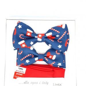 Unikatowy zestaw much we wzór symboli świątecznych wraz z poszetkami dla taty i syna.