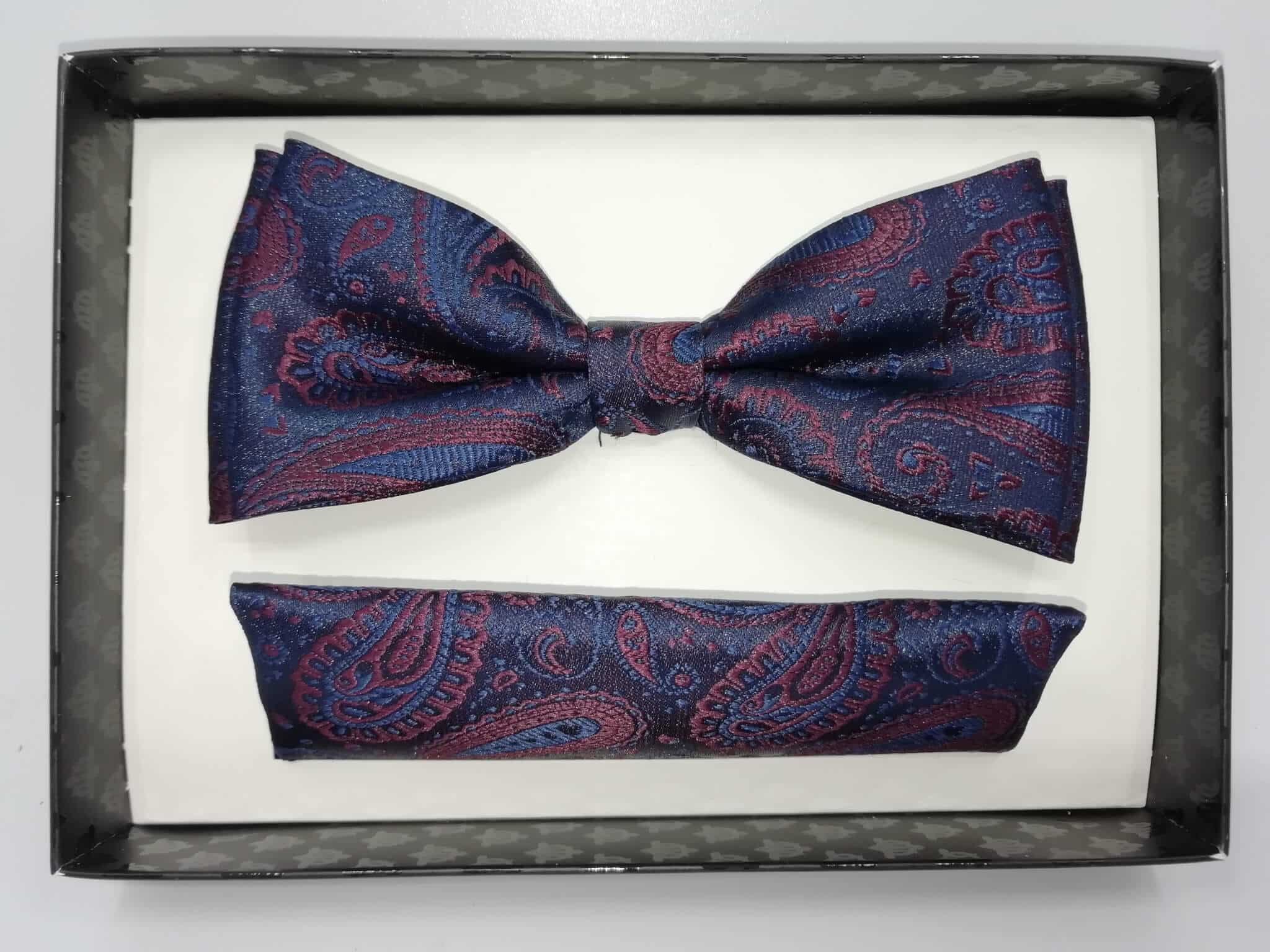 Elegancka mucha w zestawie z poszetką , niebiesko szara w turecki wzór. Mucha to dodatek, który stanowi bazę garderoby eleganckiego mężczyzny. Zgodnie z płynącym obecnie trendy modowym nie ma obowiązku, który mówiłby o łączeniu jej z frakiem czy kołnierzykiem łamanym przy koszuli. Moda nowoczesna zestawia muchę nie tylko ze stylem eleganckim, ale również z luźnym i sportowym strojem. Niebanalna mucha orzeźwi tradycyjny garnitur, jak również wyśmienicie będzie się komponować ze sportową marynarką czy luźnym kardiganem.