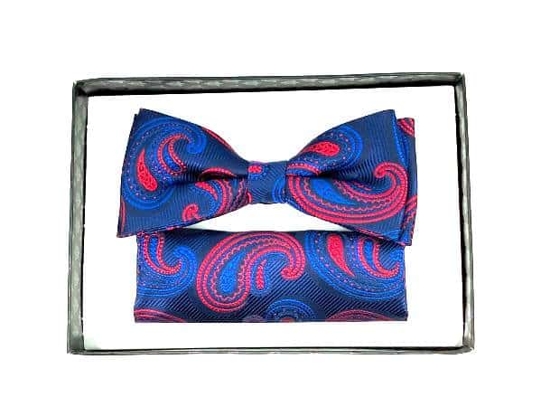 Unikatowa mucha w zestawie z poszetką granatowo czerwona.