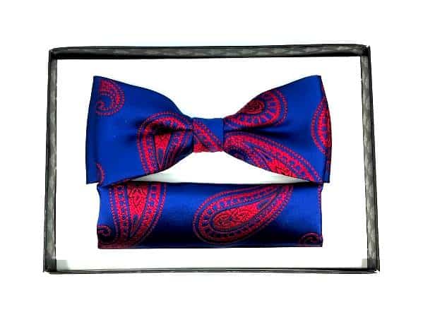 Unikatowa mucha w zestawie z poszetką granatowy i czerwony.