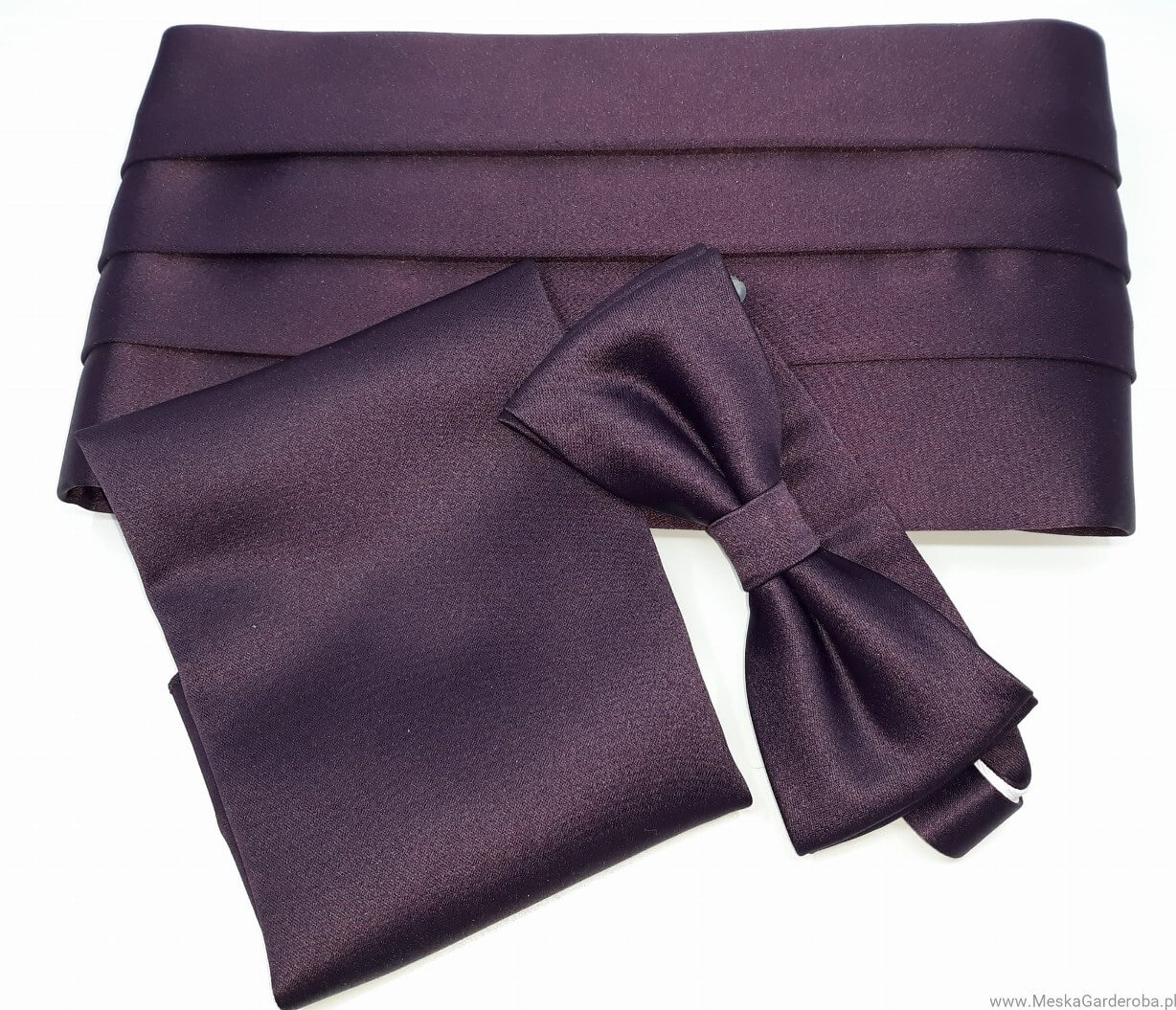 Elegancki i klasyczny pas smokingowy w kolorze fioletowy.