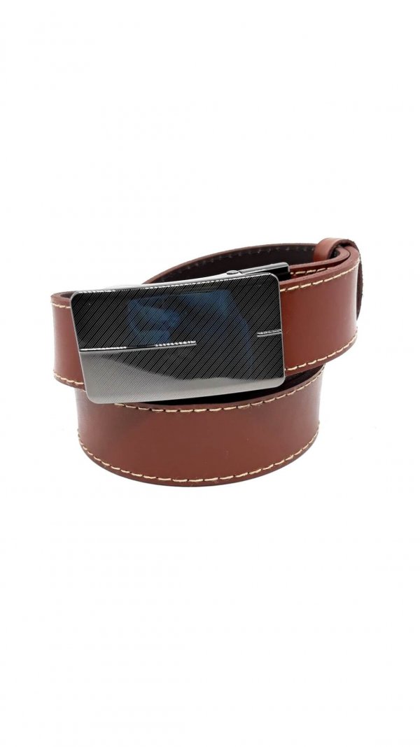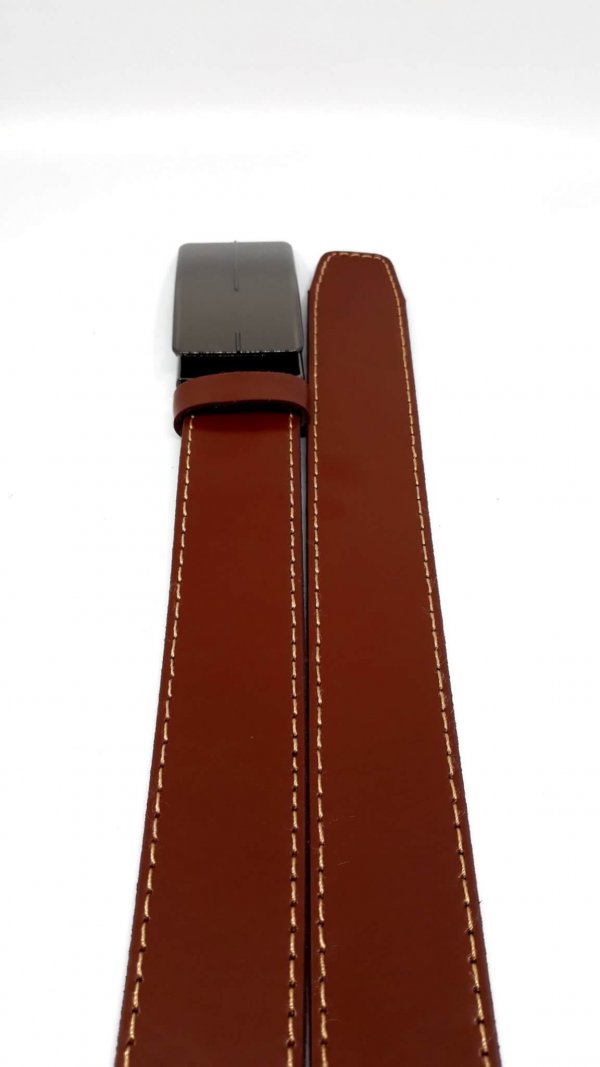 Skórzany pasek brązowy do spodni, automat wykonany z naturalnej skóry przez polskiego producenta. Ze stali o wysokiej odporności wykonano klamrę.